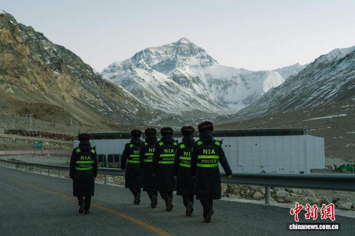 中新网拉萨12月25日电 (蒋美灵)24日,西藏出入境边防检查总站珠峰边境派出所的移民管理警察们穿梭在珠峰大本营景区的各个角落,开展常态化巡逻执勤工作。
