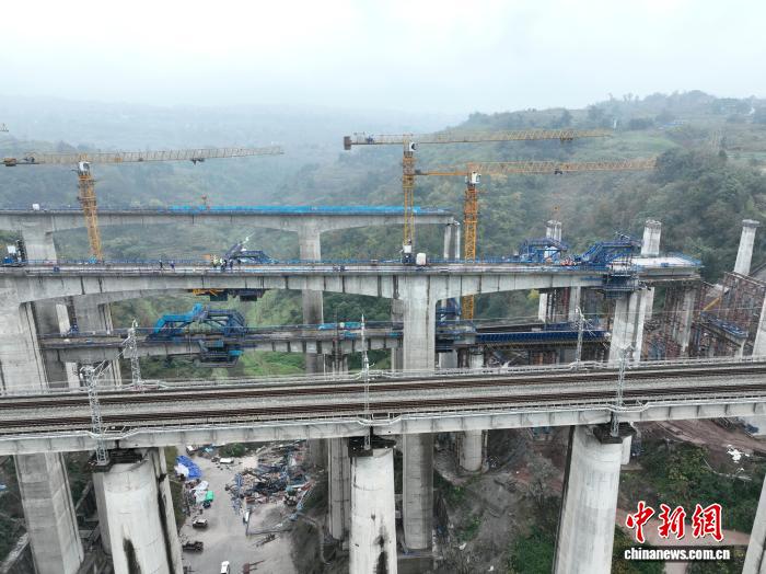 中新网重庆12月25日电 (张旭)记者从中铁一局获悉,12月25日,随着最后一方混凝土浇筑到位,由该局承建的渝万高铁打青沟左线大桥连续梁顺利合龙。