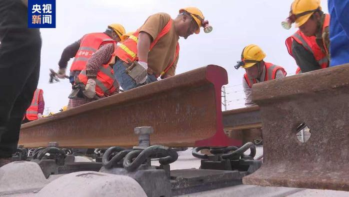 铺轨采用本邻线长轨铺设机组,该设备配备新型全自动导向装置,可将长钢轨精准导向至相邻待铺线路,实现“一次铺轨、双线成型”,作业效率较传统方式提升近一倍。