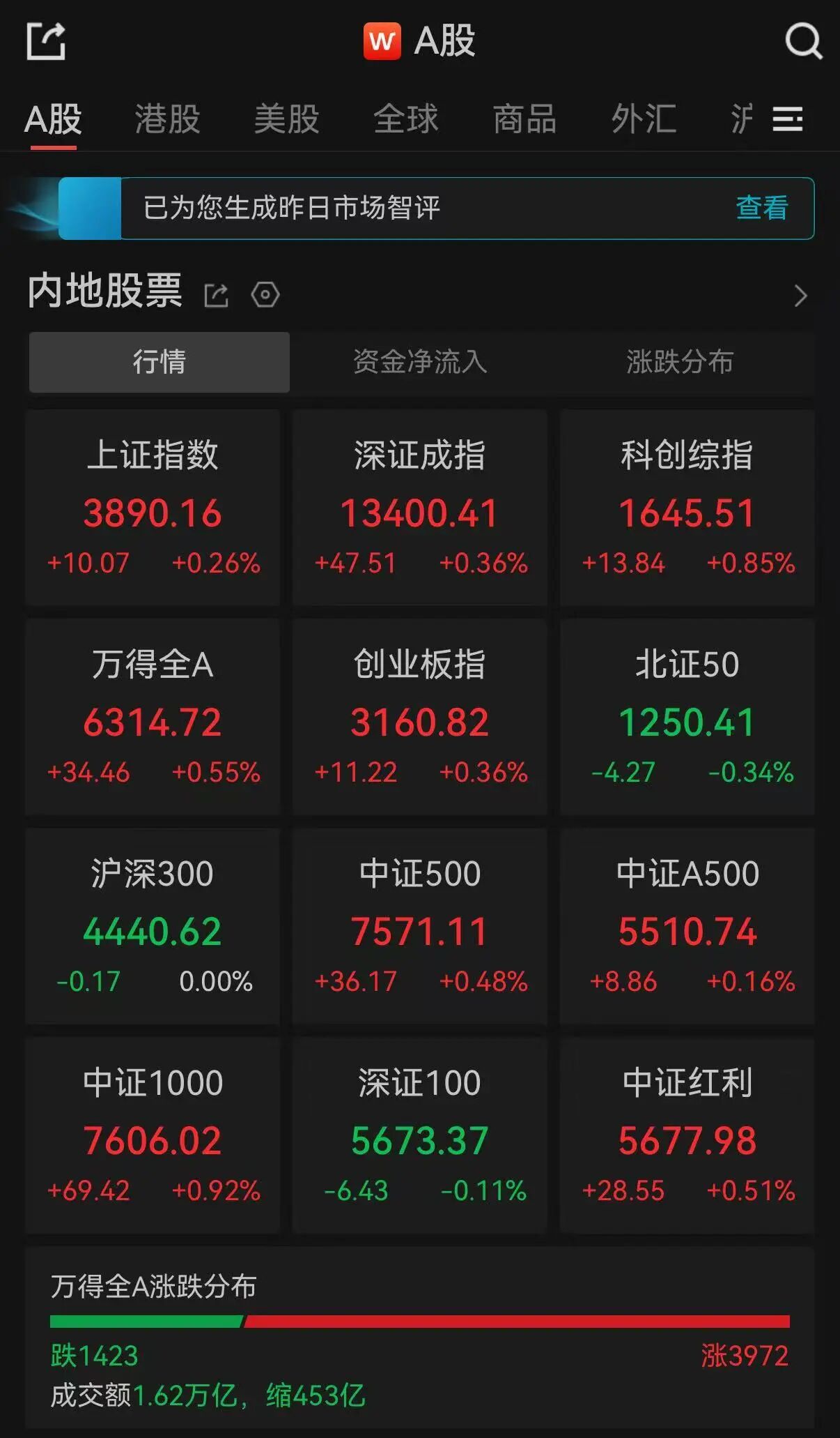 全市成交额1.62万亿,超3900只个股上涨。