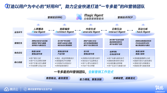 在时尚零售领域,太平鸟集团与腾讯智慧零售的合作,是AI赋能“人货匹配”的典范。通过引入腾讯企点营销云MAGIC Agent智能体,太平鸟实现了营销全链路的智能化。从理解“提升秋季童装新品GMV”的业务目标开始,AI能自主圈定高潜用户、生成个性化商品推荐与营销内容,并一键推送至导购企业微信。最终,该系列新品点击率提升90%,支付转化率提升20%,新品GMV大涨31%。这背后,是AI作为“增长团队”在发挥决策与执行效能,让导购成为更懂消费者的“金牌销售”。