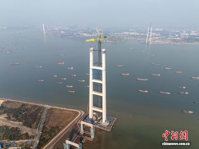 中新网东莞1月22日电 (记者 蔡敏婕)广东交通集团22日发布消息称,粤港澳大湾区核心枢纽工程——狮子洋通道狮子洋大桥T55节段成功吊装,主塔高度突破300米大关,主塔计划4月封顶。