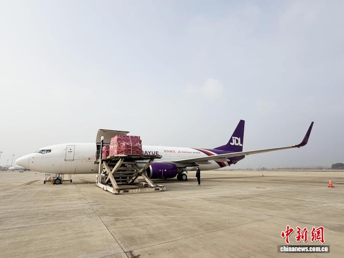 中新网武汉1月27日电 (张芹 涂宇轩 刘炳霖)一架满载跨境电商包裹及高价值电子产品的京东航空B737—800BCF全货机27日上午从武汉天河国际机场起飞,直飞泰国曼谷素万那普国际机场,标志着京东物流“武汉⇋曼谷”国际货运航线开通。