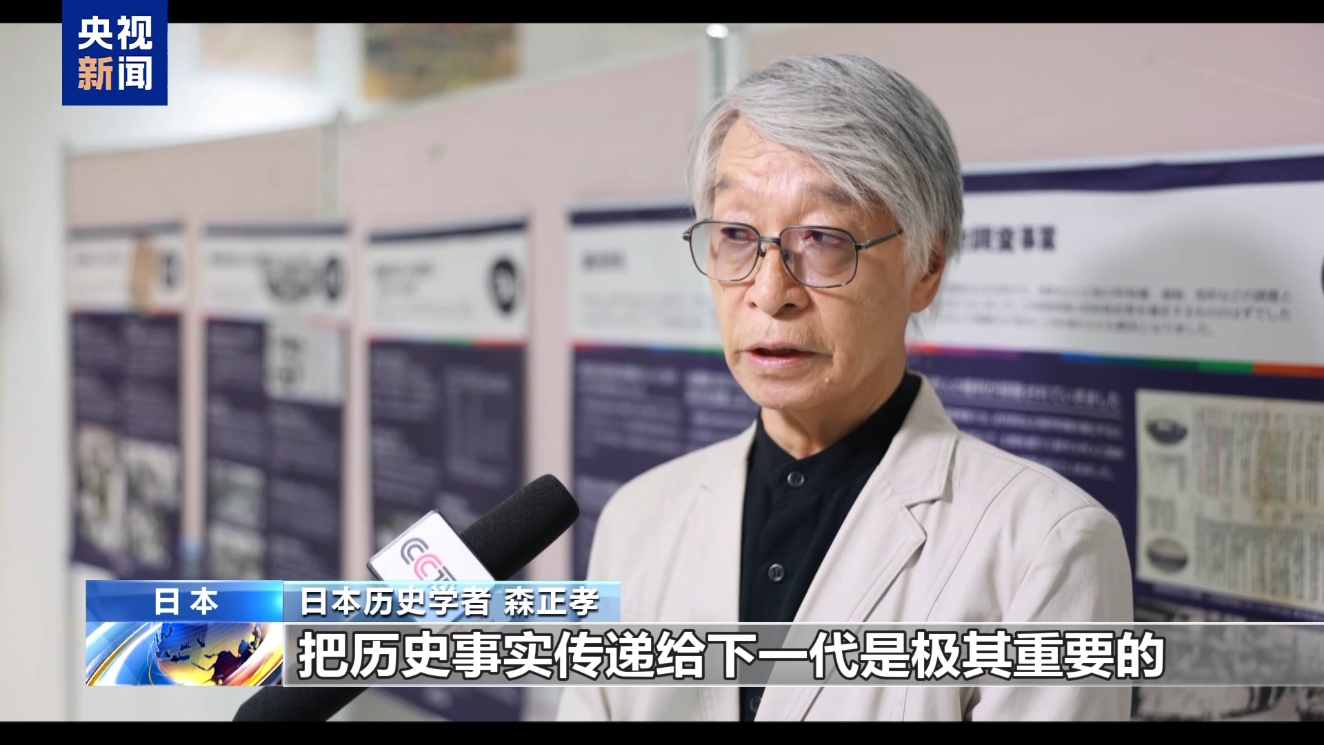 日本历史学者 森正孝:把历史事实传递给下一代是极其重要的。历史是连续的,正是因为有过去才会有现在。南京大屠杀、强征劳工、慰安妇等一系列,关于侵华日军战争罪的极其重要的内容正在被日本政府不断移除,令人深感忧虑。