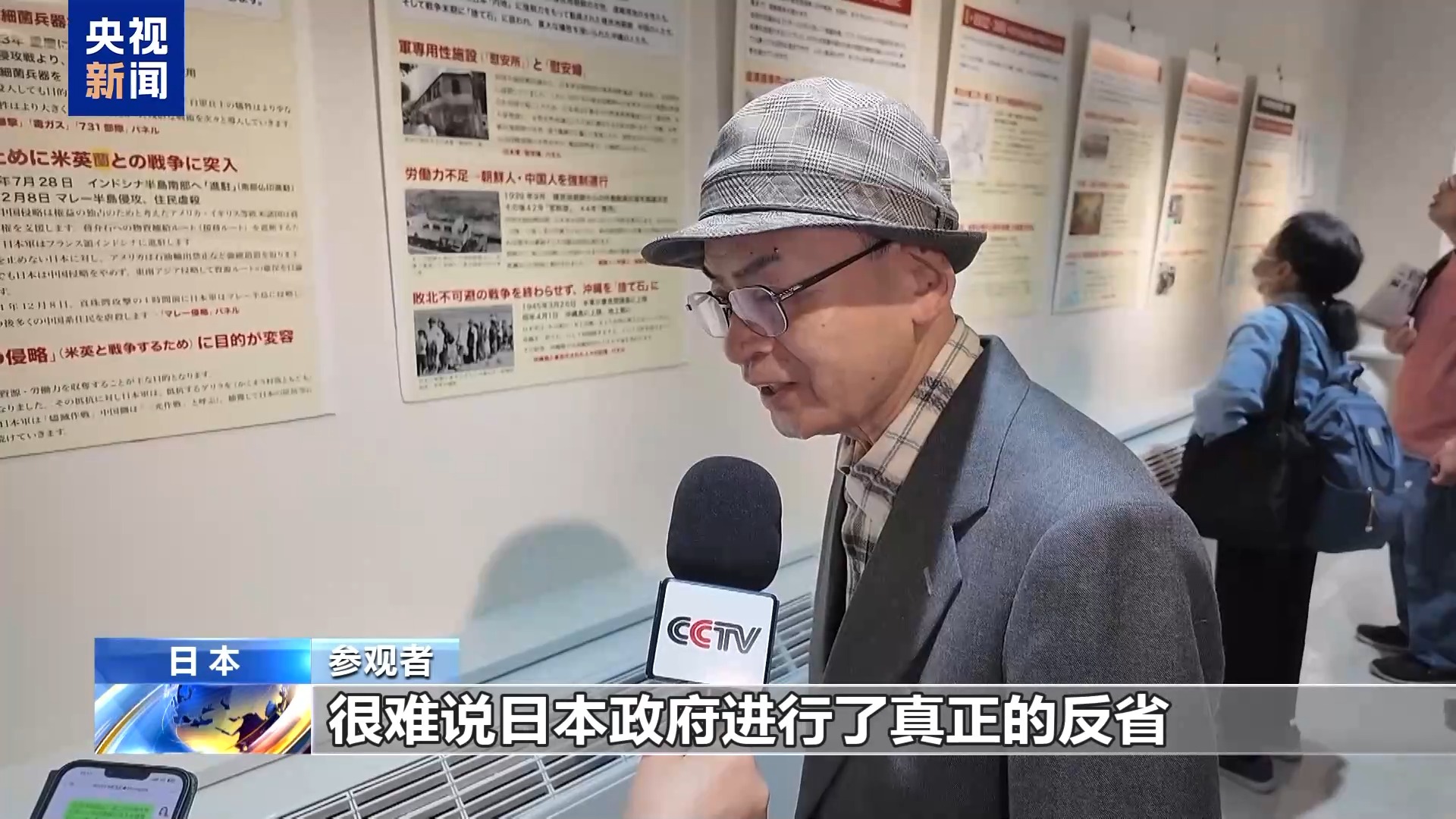 多位参观者表示,日本政府近年来在扩充军备、推动修宪等方面的动向,与回避历史、未进行真正的反思密切相关。