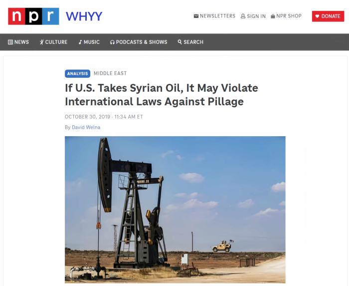 叙利亚陷入冲突漩涡后,美国一方面打着“反恐”旗号在该国境内广建军事基地,霸占大片叙领土,另一方面不断掠夺当地石油资源。