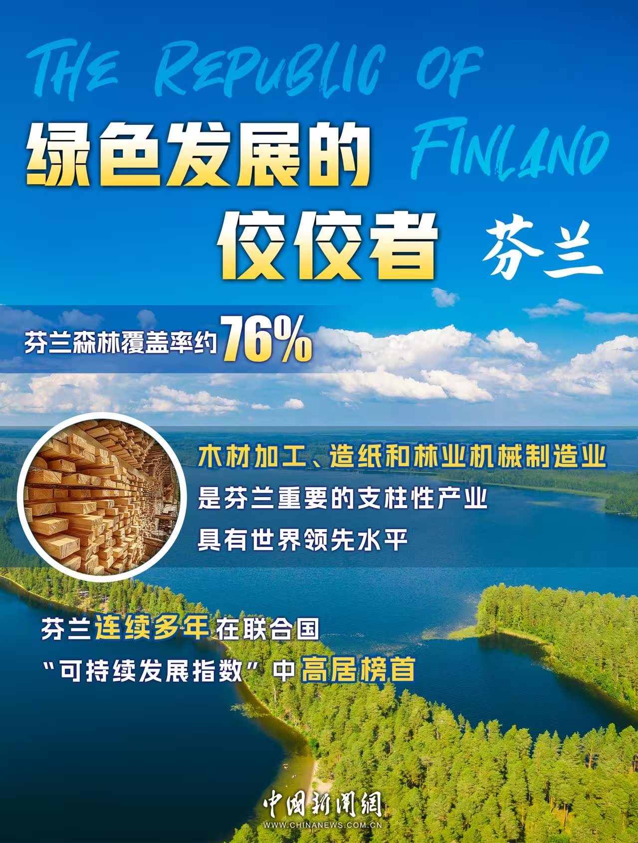 这个国家以“千湖之国”著称,有约18.8万个湖泊,内陆水域面积占全国总面积的10%。这个国家还被称为“圣诞老人的故乡”,全国三分之一的土地在北极圈内,午夜阳光是其标志性的自然现象。