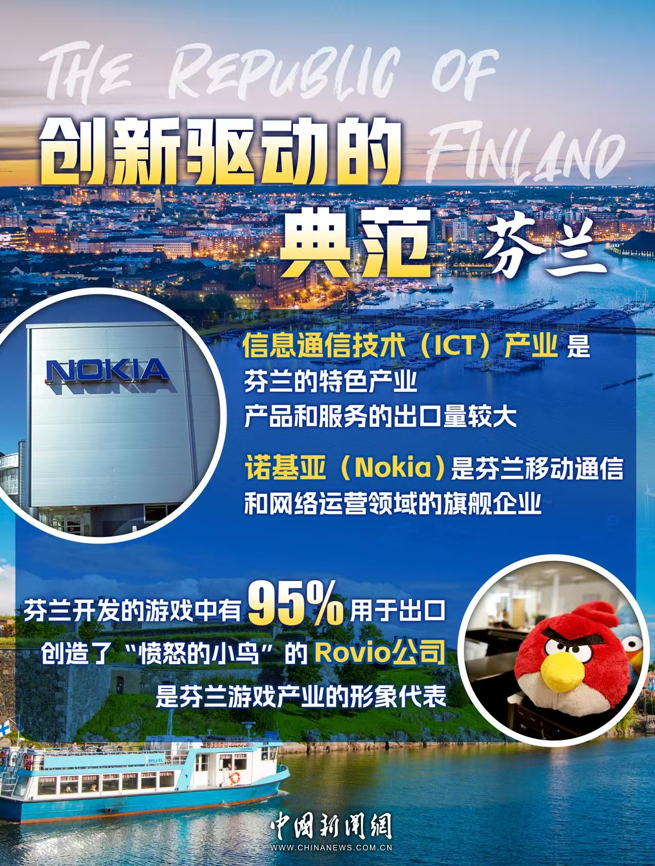 芬兰政府高度重视技术创新在国民经济发展中的作用,信息通信技术(ICT)产业是芬兰的特色产业,包括游戏、手机硬件和软件、通信服务与网络、信息通信安全技术、地理信息技术和系统等。