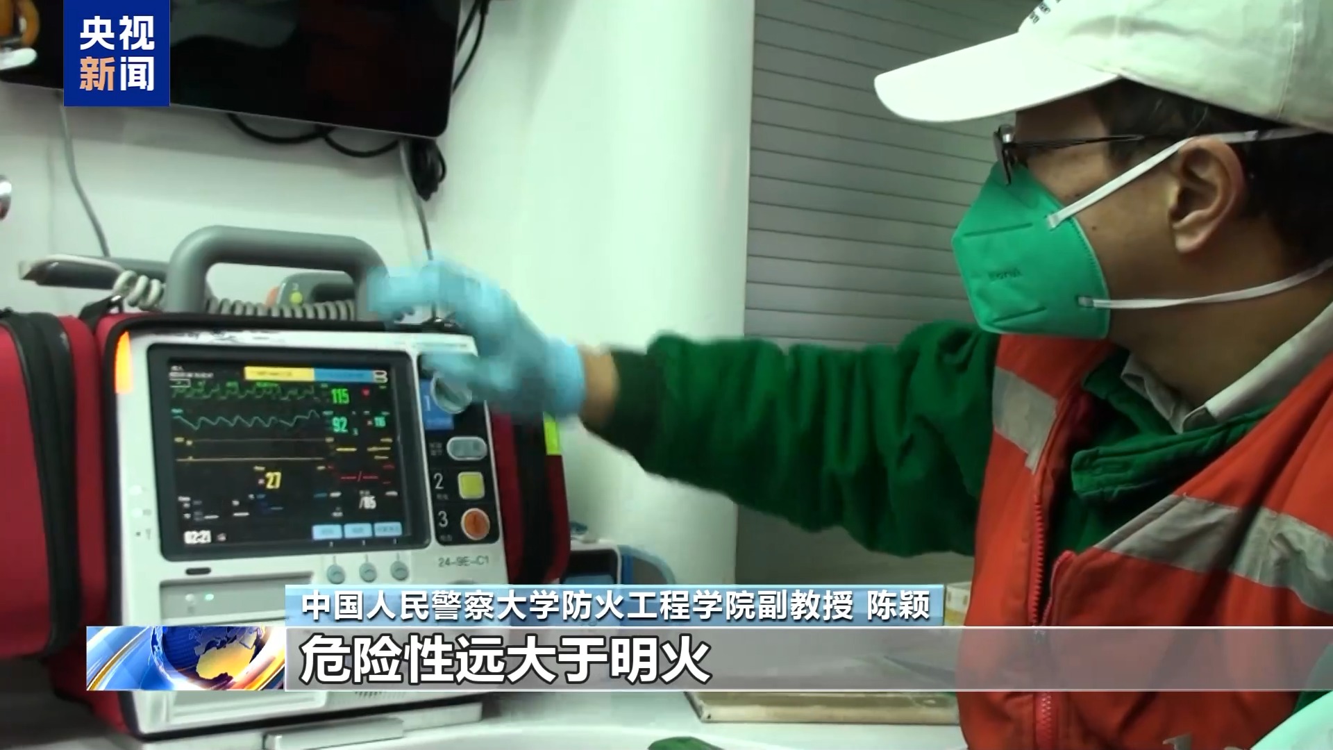 中国人民警察大学防火工程学院副教授 陈颖:家居用品里的布料、塑料、电器、木材一旦起火,燃烧不充分就会产生大量一氧化碳等有毒气体。人吸入后会瞬间被夺走血液携氧能力,短短3到5分钟,就会头晕发软、意识模糊,甚至昏迷失去逃生机会,危险性远大于明火。一氧化碳浓度超过50ppm(百万分比浓度)就有健康风险,达到200ppm(百万分比浓度)以上会快速引发中毒。