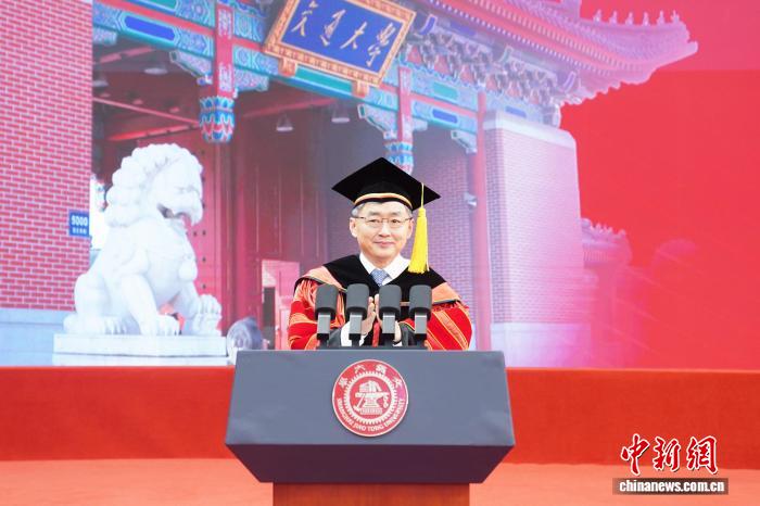 教师代表、校友代表、毕业生亲友等齐聚现场,共同见证这一重要时刻,为毕业生送上祝福与期许。上海交通大学校长、中国科学院院士丁奎岭以《把握选择,向新而行》为主题,与上海交通大学党委书记杨振斌共同为毕业生送上寄语。