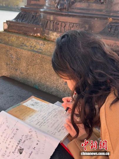 在拍照打卡后,她在书页写下拉丁语短句“Carpe Diem”,意为活在当下。“我知道自己可能会离开伦敦,所以想珍惜在伦敦的每一刻。我也把这份心情分享给陌生的相遇者。”