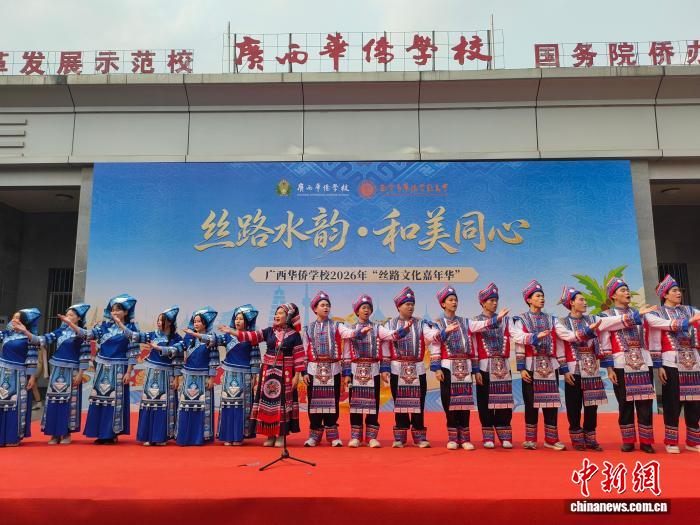 在广西华侨学校活动现场,身着各国传统服饰的中外学生带来精彩的节目。广西敬酒歌、泰国风情歌舞等节目轮番上演,掌声与欢呼声此起彼伏。