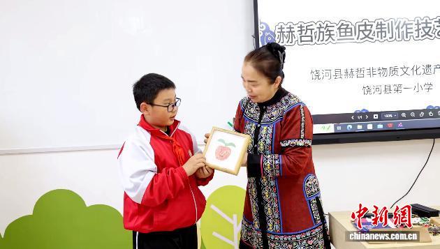 饶河县第一小学学生栾若一表示,自己用鱼皮制作了苹果造型,非常有成就感,特别喜欢这节课。