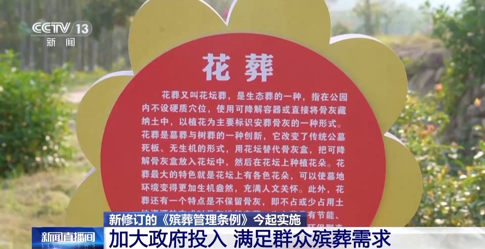 近年来,越来越多的群众选择骨灰海撒、树葬、花坛葬等节地生态安葬方式。新修订的《殡葬管理条例》明确了文明节俭、绿色生态的导向,将其贯穿殡葬活动全过程,推行节地生态安葬,倡导文明、低碳、安全祭扫。