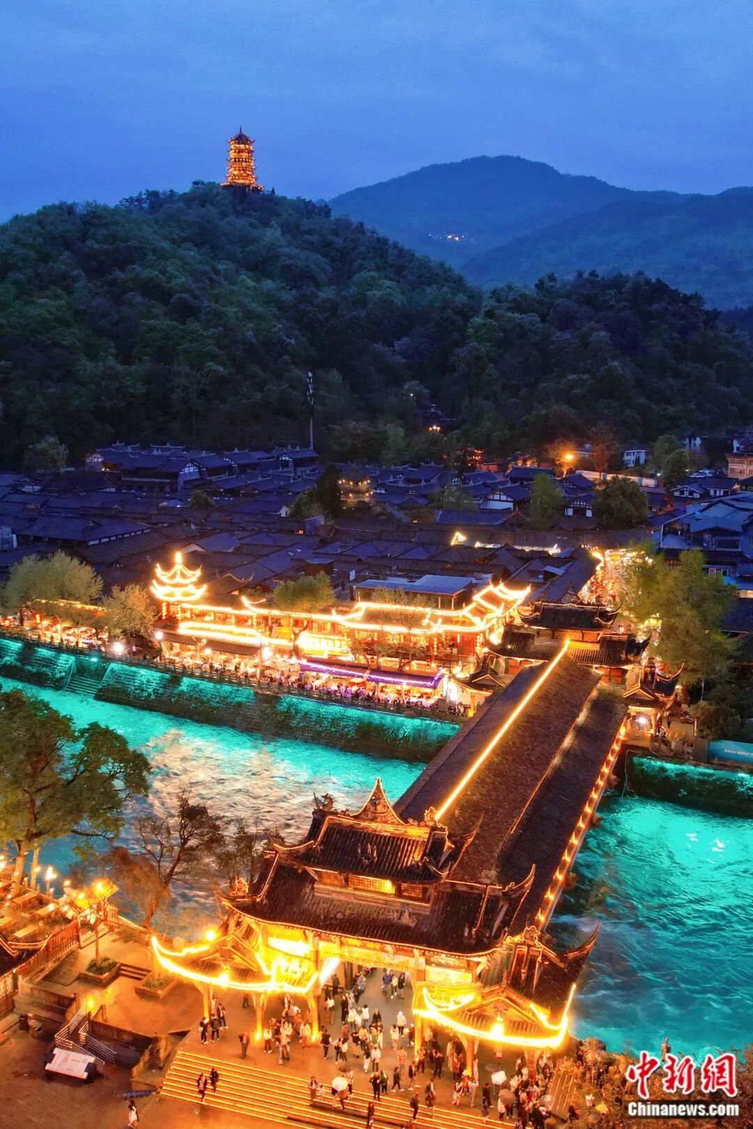 岷江水仿佛笼上了一层蓝色轻纱