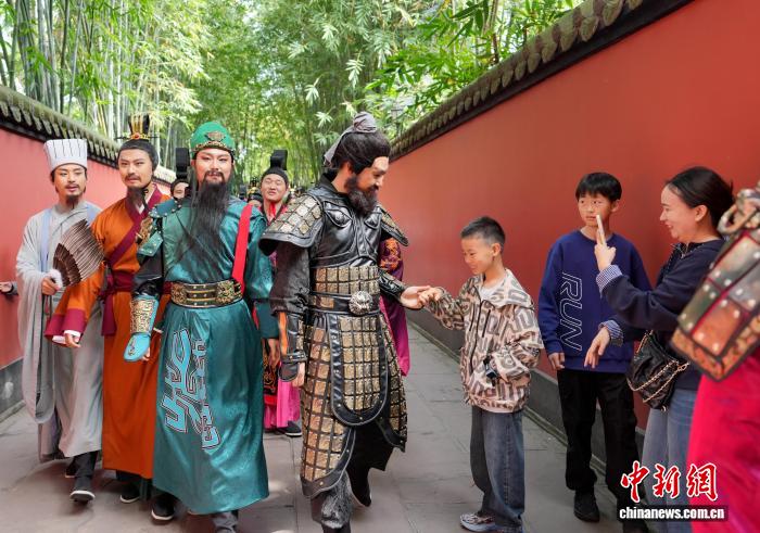 成都武侯祠博物馆选择了一条更“沉浸”的路径。该馆以“春遇武侯 拜见丞相”为主题,打造三国主题研学体验。“诸葛亮”“刘备”等三国人物沿馆巡游,与学生近距离互动;三义庙内设置投壶、射箭、蹴鞠等古风游艺项目,吸引众多亲子家庭趣味参与;更具亮点的是 “三国寻梦线” 双层巴士,由工作人员扮演的“关羽”担任驾驶员,车内还原三国场景与故事演绎,历史在行进间变得可触可感、鲜活生动。