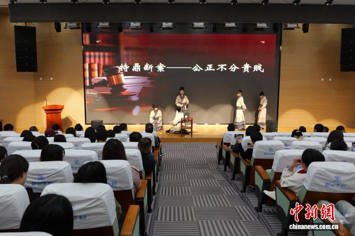 当日开幕式现场还上演情景剧《商·鼎刑记》。参演学子身着商代服饰,以青铜鼎为艺术意象,生动再现了商代君王关于法律刑罚的历史场景,为本次展览增添了浓厚的文化氛围与沉浸式观展体验。