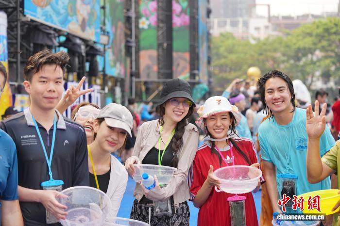 导读:中新社云南西双版纳4月15日电 (韩帅南 陆希成)傣族、布朗族、德昂族等各族民众15日在云南省西双版纳傣族自治州景洪市泼水广场上,与来自中国各地及泰国、老挝、美国等国家和地区的游客,端起水盆、举起水枪,互送祝福,尽情享受“泼天的欢乐”。
