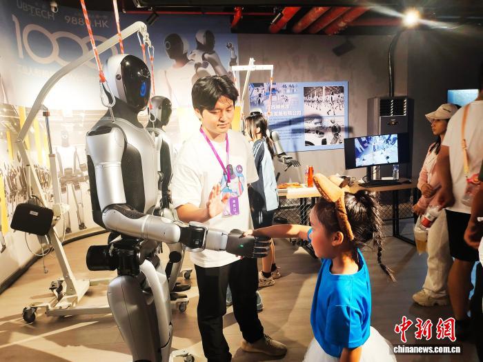 桥的另一边,机器人踩着节拍与民众共跳竹竿舞,引来阵阵欢呼,“嗨”翻全场。
