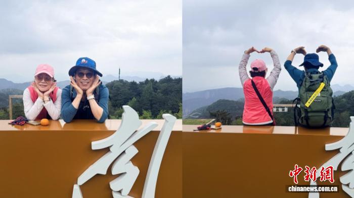 行至南天顶,浪漫惊喜不期而至。这里坐落着浙江省首个5A级景区的户外结婚登记颁证中心,坐拥蓝天白云、群峰环抱,被誉为“最浪漫颁证点”。一对前来登山的韩国夫妇恰逢结婚35周年,登临此处瞬间被眼前景致打动:“本是一场寻常登山之旅,竟意外遇见如此浪漫的纪念之地,神仙居太治愈、太浪漫了!”他们在南天顶前合影留念,此次登山之旅也成为一次特别的纪念之旅。