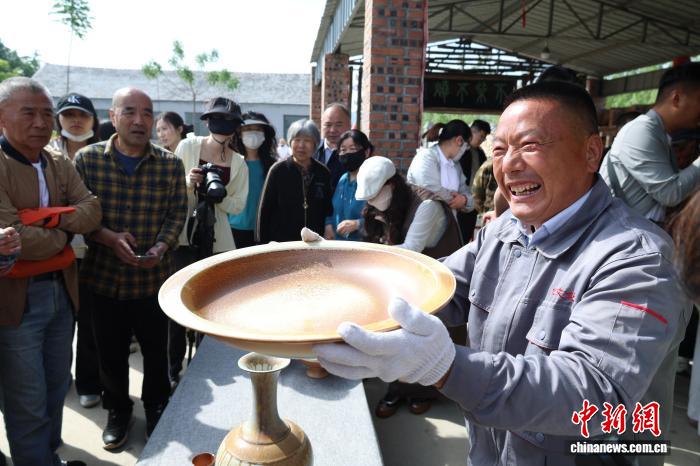 “启窑·见变”环节循古法而设,老窑匠上香、敬酒、撒五谷、念诵祭窑词,随后与少年儿童携手共同开启窑门。随着鸣锣三声,窑变珍品惊艳亮相。伏陶在保留核心工序的基础上融入现代审美与实用功能,让土陶从传统器皿蝶变为文创爆款与研学教具,实现从“守艺”到“创艺”的产业升级。
