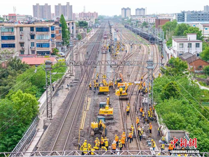 中新网武汉4月23日电(孟硕 于海龙 余哲)2026年“五一”假期临近,铁路客流即将迎来高峰。为提升线路设备质量、保障旅客出行安全舒适,中国铁路武汉局集团有限公司(以下简称“武铁”)于4月19日起,对管内京广线、孟宝线、宁西线三条普速铁路干线的固定设备同时启动今年第一阶段集中修施工。