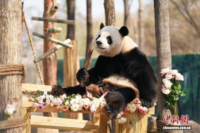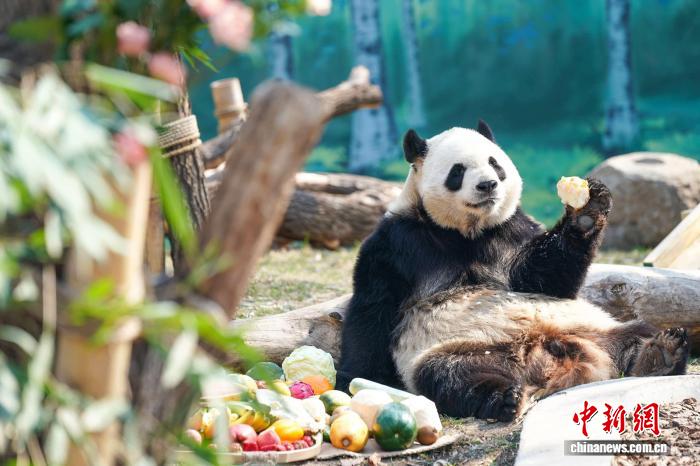 中新网哈尔滨4月24日电 (记者 王琳)哈尔滨太阳岛大熊猫馆于24日举办“芝士”“芝麻”9周岁生日会,这是“大熊猫兄弟”从成都“移居”哈尔滨后度过的第一个生日,气派又温馨的场面令猫粉直呼“太宠猫了”。