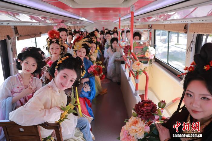 据悉,本次活动以“一花双生,古今对望”为核心概念,以“城市巡游”的形式,在西安城市观光车上呈现了一场流动的国风文化盛宴,为市民游客带来了沉浸式的春日体验。