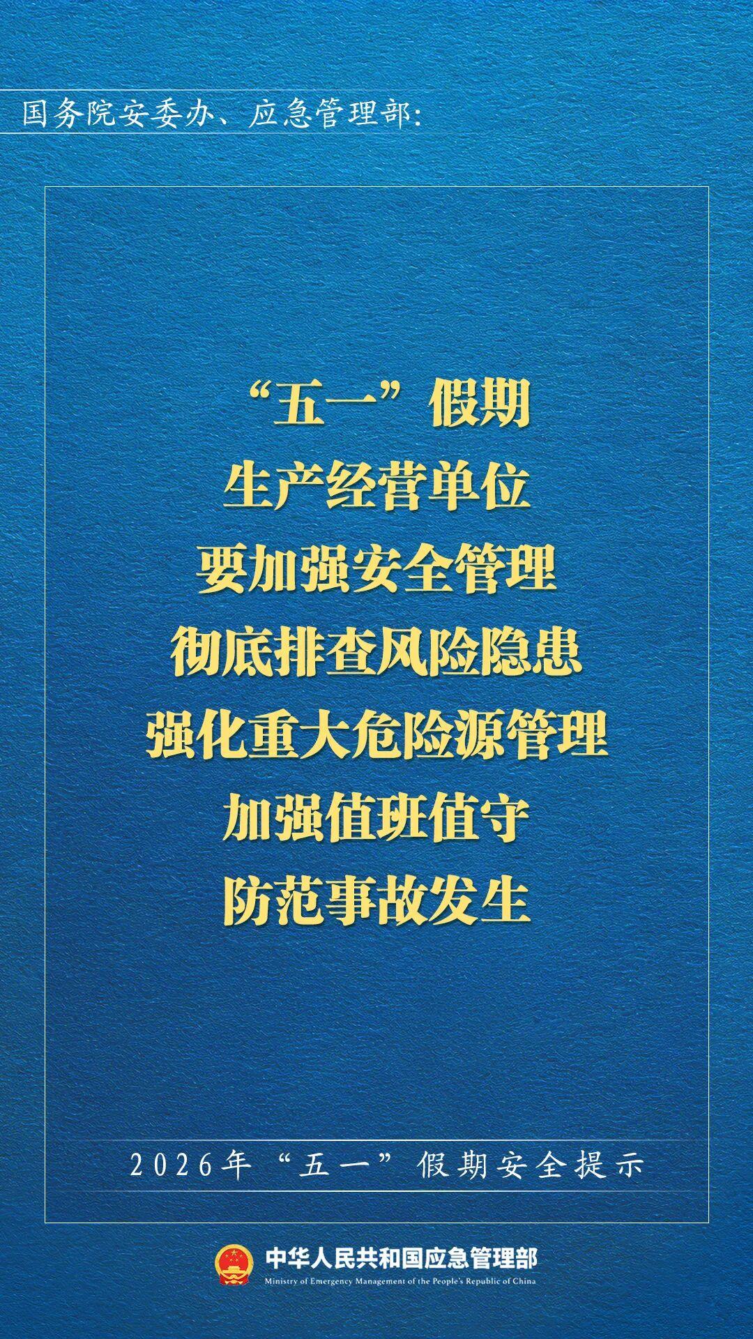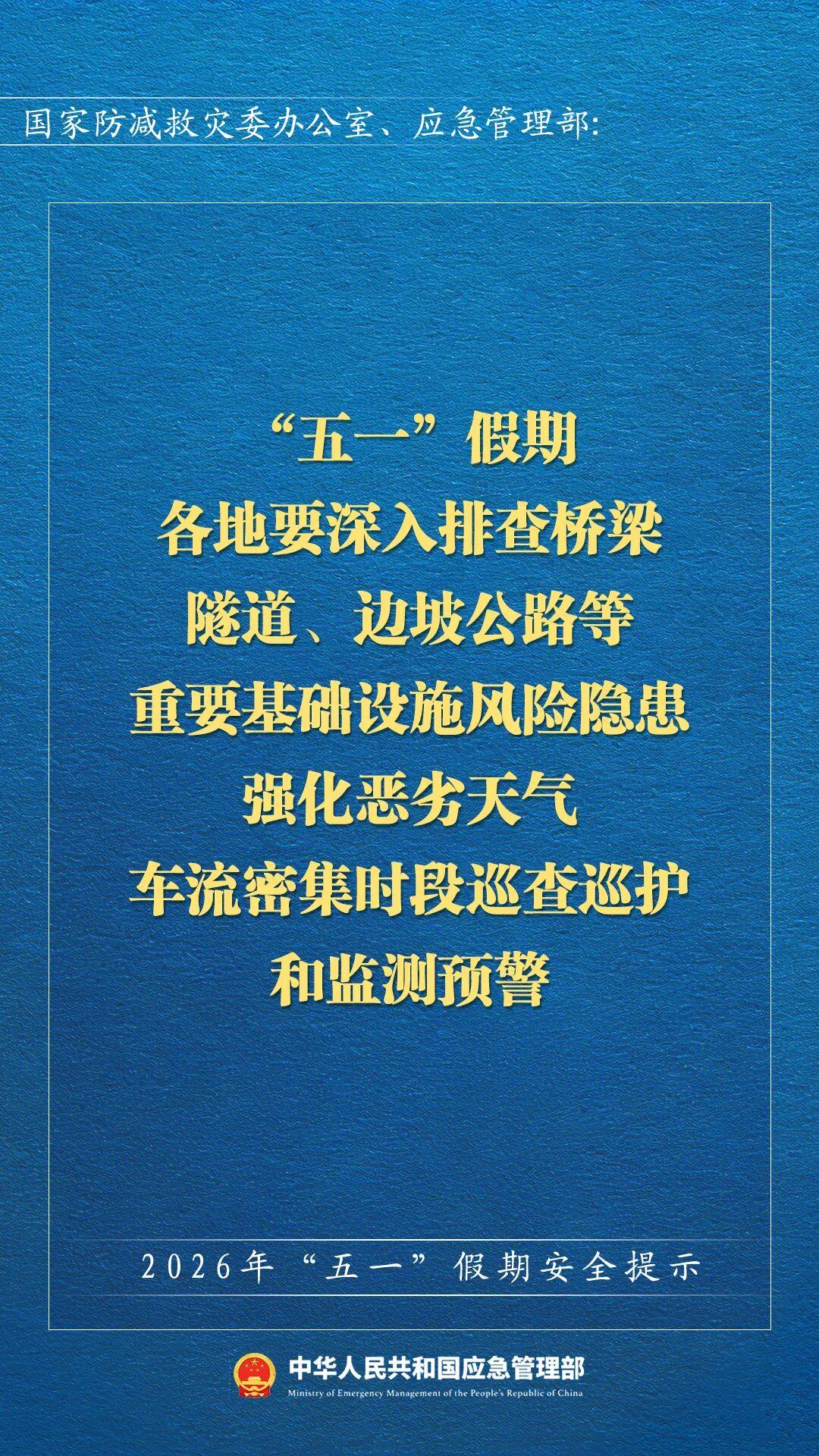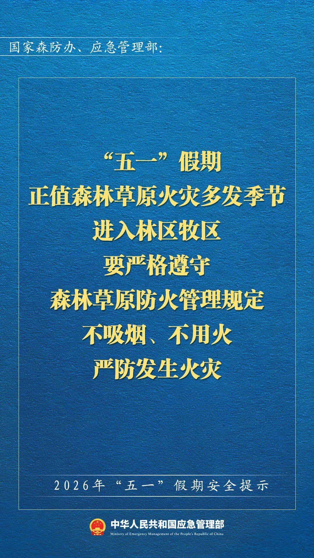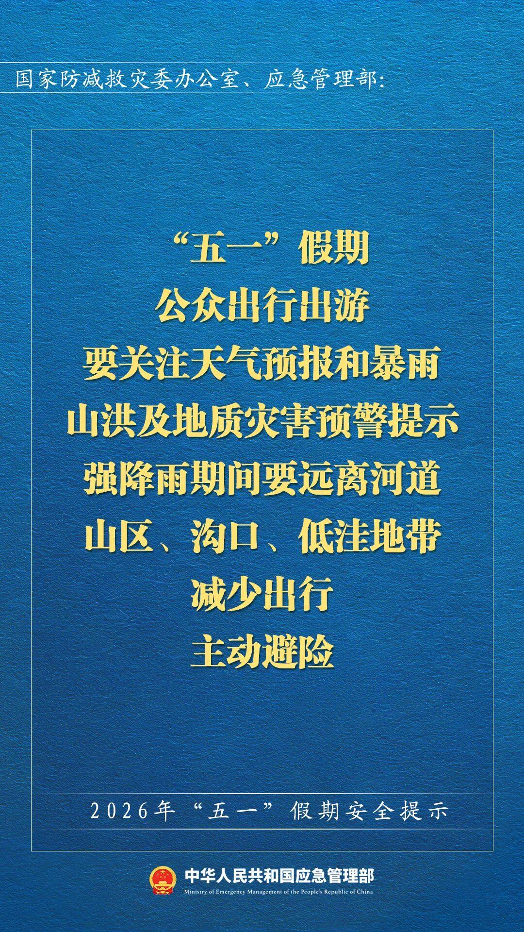 五一假期来临,国家应急管理部发