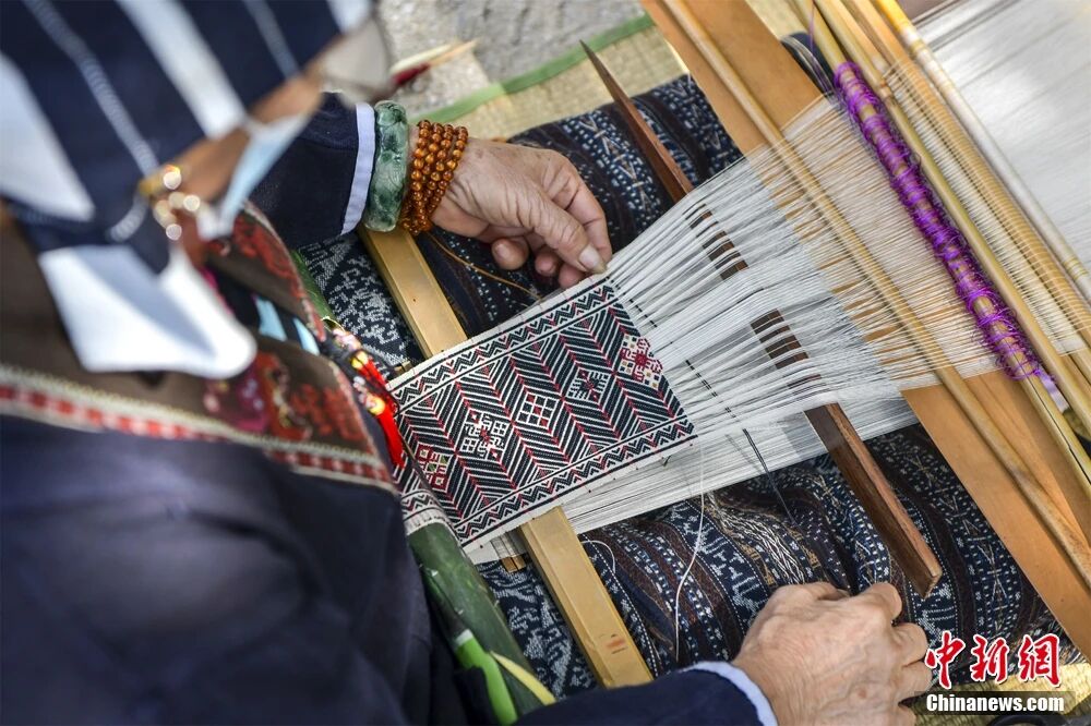 村口,阿姐们用灵巧的双手,将美孚黎特有的絣染技艺和蛙纹图腾,织进现代的时尚里。