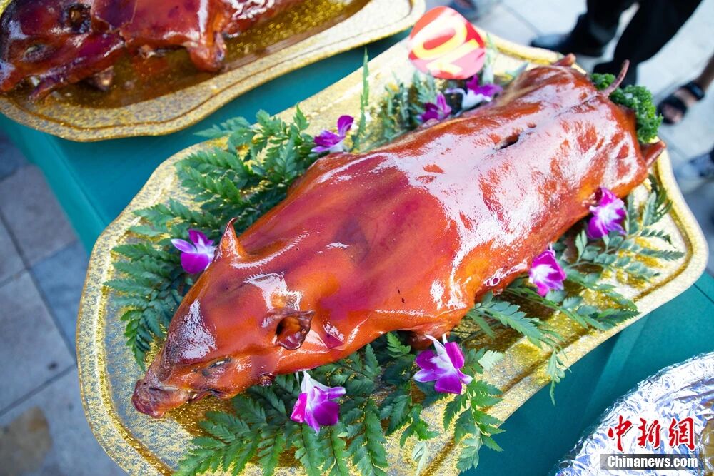 烤架上的四更烤乳猪,滋滋作响,焦香扑鼻。这一口极致风味,为东方的一天画上最圆满的句号。