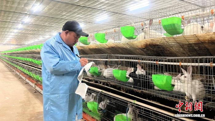 中新网兰州1月7日电 (程娟娟)冬日的董志塬,寒风料峭。但在甘肃省庆阳市西峰区什社乡的春野原养殖家庭农场里,却是一派忙碌火热的景象。9栋标准化大棚内,4万多只肉兔正悠闲进食。一大早,农场负责人郑甲寅刚从四川送完订单返回,便换上工服开始了新一轮的劳作——察看兔群、记录生长数据、调配饲料……在他一手建起的兔场里,各项工作井然有序。