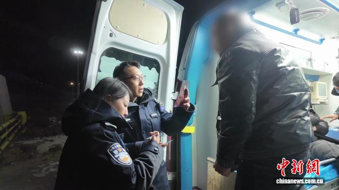 25日0时24分,载着患者的蒙古国车辆抵达口岸,中方医护人员迅速与蒙古国医护人员完成患者信息核对与交接。边检民警分工协作,一边协助医护人员小心翼翼转移患者,一边快速核查相关证件、办理通关手续,全程仅用4分钟便完成所有通关流程。