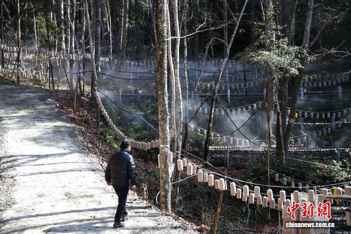 仲冬时节,武夷山脉西麓的层林苍劲深邃。在江西省抚州市广昌县旴江生态公益林场,茶树菇的清香与泥土的芬芳交织,村民们身披雨衣穿梭在悬挂着菌棒的树林间,指尖翻飞间将新鲜菌菇收入筐中。