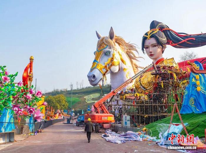 中新网自贡1月13日电 (刘刚 何艳 张良轶)目前,备受期待的第三十二届自贡国际恐龙灯会筹备工作进入了最后冲刺阶段。整体灯组制作与园区布置进度现已完成90%,超过1200名施工人员全力赶工,在灯会园区内外开展安装、调试与收尾工作,全力保障灯会如期绚烂启幕。