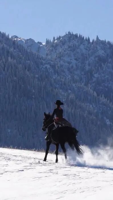 任职新疆伊犁州文旅局副局长时,贺娇龙的办公桌对面,始终挂着那张雪原策马的照片,一抬头,就能看到。