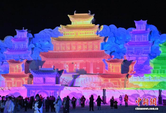 开幕式当晚,新落成的高30米、宽70米、用雪量10万立方米的雪雕版“云顶天宫”正式亮灯,在夜空璀璨烟花的映衬下显得壮观无比。这座以探险题材小说《盗墓笔记》为蓝本雕琢的冰雪地标广受书迷关注,官方在建造过程中特别在线上开启了“云监工”活动,推动长白山冰雪品牌持续破圈。