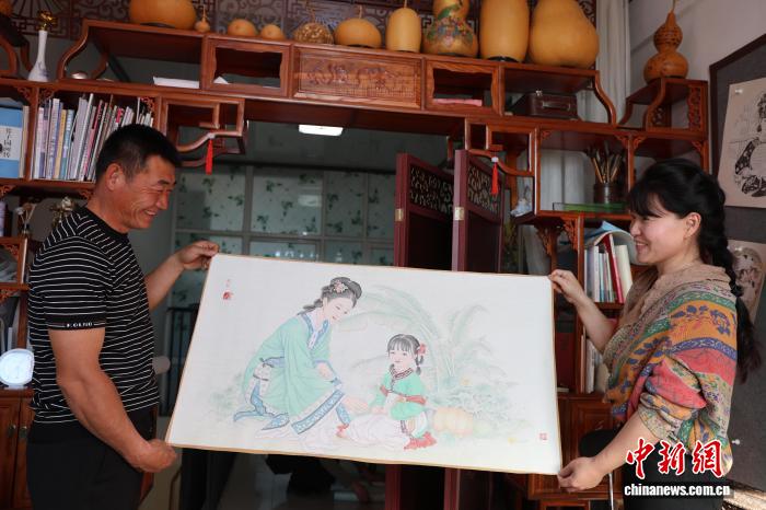 小街基镇妇联主席张玉红是吴金莲追梦路上的支持者,当初也是张玉红牵头帮吴金莲在镇里办了第一场画展。