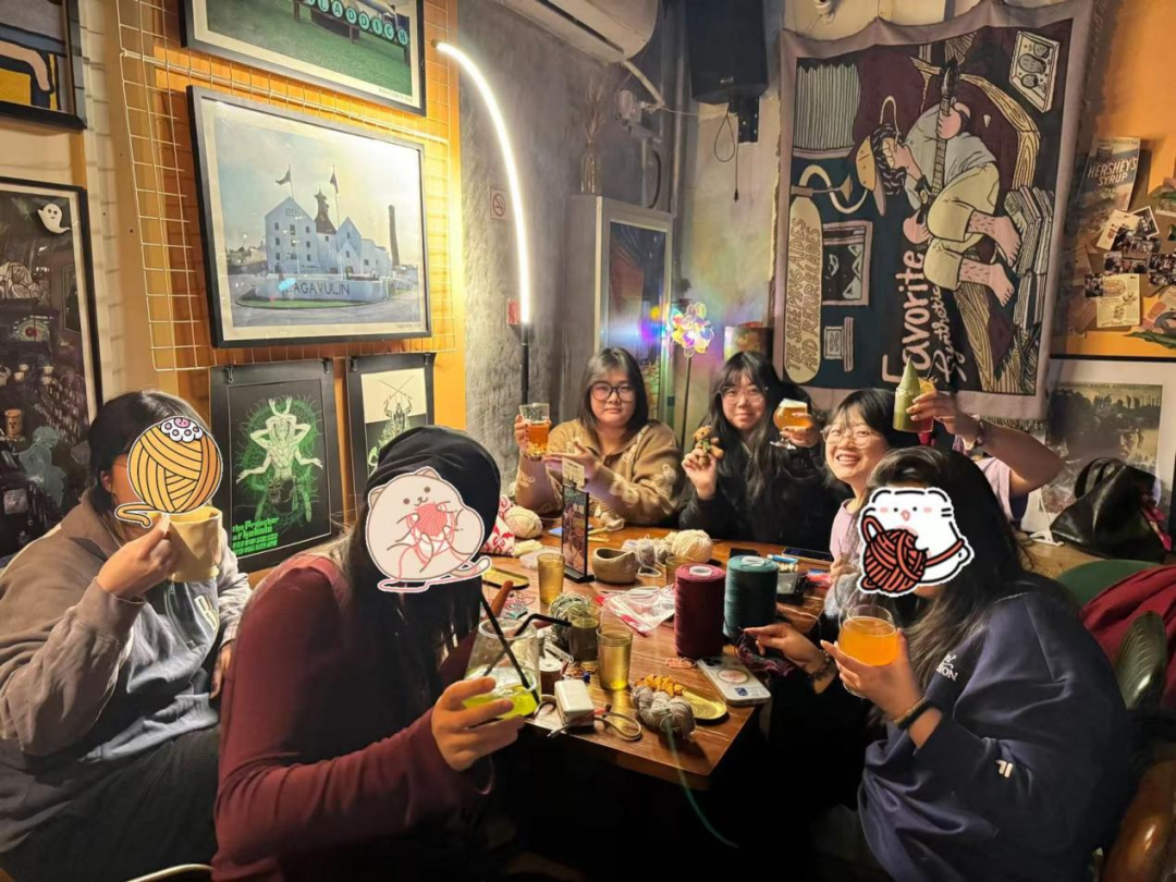 获得非常多的正向反馈后,她想试着在线下将相同爱好的人组织起来。万琬自嘲是个“酒蒙子”,几年来,几乎每天下班后,她都会到北京朝阳区的DDEC酒吧小酌,边喝边织。