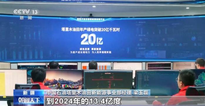 中国石油塔里木油田新能源事业部经理 梁玉磊:我们的光伏发电量“三年三跨越”,从2023年的2.6亿度到2024年的13.4亿度,再到今年突破20亿度,实现了从无到有、从小到大的跨越式发展。