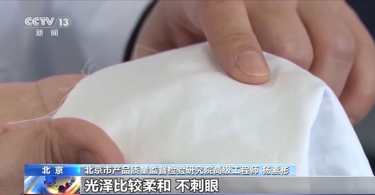 北京市产品质量监督检验研究院高级工程师 杨素彬:其实无论是天然纤维、化学纤维还是人造纤维,都有各自的优缺点。选用衣物时,最正确的方法是根据使用场景的需要,来选择不同材质的纺织品。常见的面料,比如说棉:棉的手感柔软、亲肤,表面可能有一些小棉结,光泽比较柔和、不刺眼,易产生一些褶皱且恢复性比较差。羊毛手感柔软温暖;羊绒比羊毛更轻、更细腻一些;聚酯纤维手感就比较顺滑有光泽,不易起皱,而且质地比较耐磨。