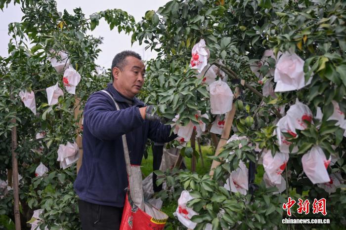 四川省眉山市丹棱县齐乐镇红石村,60岁的果农赵元川走进自家果林摘下一颗柑橘,拆开防寒袋,剥开果皮,果汁顺着果瓣流出。赵元川告诉记者,“这个时候,别的地方的果子早就卖完了,我们的才刚开始采摘。”