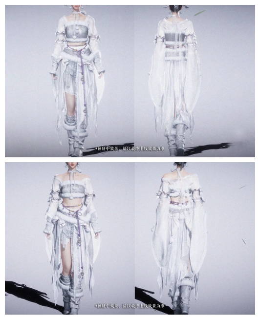“此外,我们也收到了不同游侠关于时装个性化的建议和反馈,为了满足大家对该外观的多样需求,带给大家更丰富随心的搭配选择,我们将在后续更新中为‘飞白成诗’的男女时装各自增加2套裁造方案。”