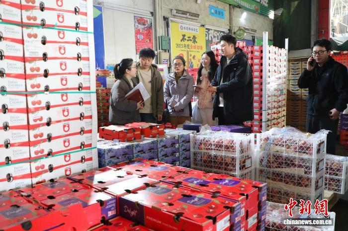 在农贸城的琼浩果品门店,十余名员工正将刚到的智利车厘子拆箱、分级、打包,一箱箱贴好标签发往全国各地。“快过年了,采购人多,每天要发200到300单。”老板任海琼指着身后堆成小山的货箱说,今年春节期间,云南蓝莓、融安脆蜜金桔等产品销量尤为突出。