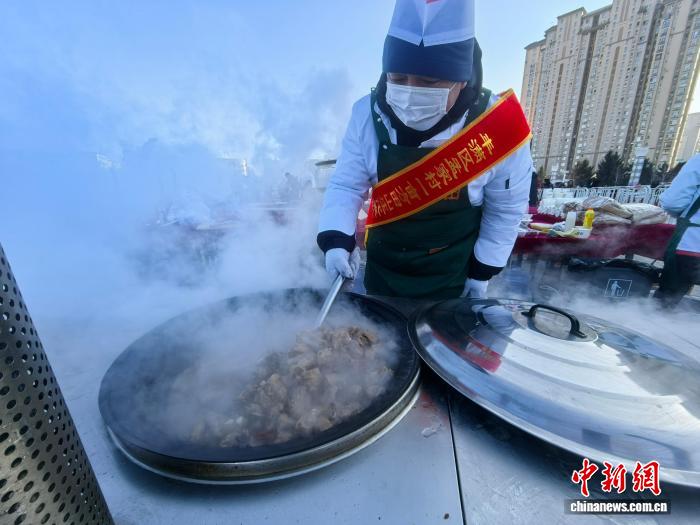 当天清晨,9支代表队在吉林市人民广场点起柴火,加热铁锅。新鲜的黑猪肉与葱花等配料,在锅里不停翻滚,腾起的雾气混合着肉香,让人垂涎。