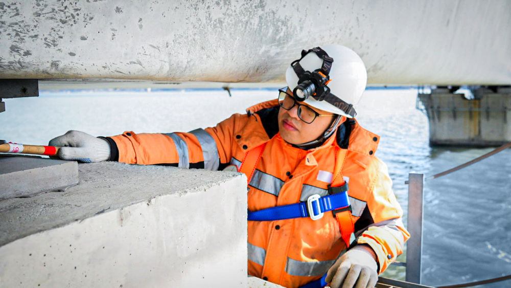 从踏上箱梁的那一刻起,他们就必须完成对212座高铁桥梁、桥墩的巡视,对8000多颗高强度螺栓进行敲击检查,为旅客和列车提供安全保障。