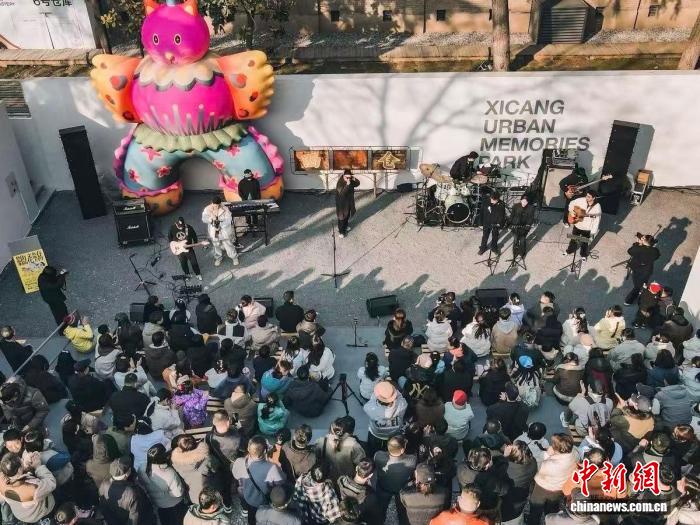 中新网西安1月3日电 (杨英琦 张一辰)2026年元旦假期,古都西安雨雪纷飞,寒意侵人。然而步入位于老城区的西仓市集文创公园,一股由人流、声浪与活力汇成的热流扑面而来。秦腔、西安鼓乐与摇滚乐队轮番上场,年轻摊主们在摊位间穿梭忙碌——传统与新潮在此碰撞交融,升腾的消费热情与文化活力,正成为陕西假日文旅消费热潮的生动缩影。