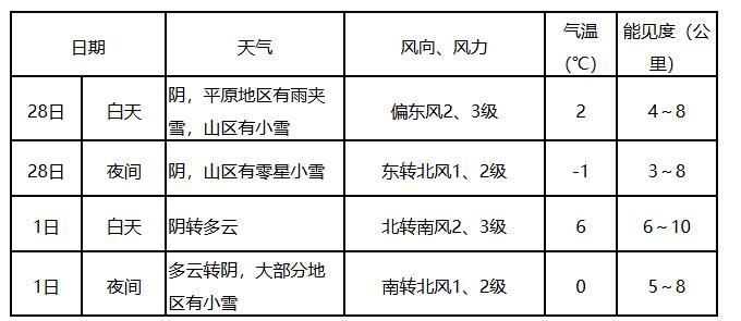 28日傍晚至3月1日中午,长春、乌鲁木齐等机场有小雪。