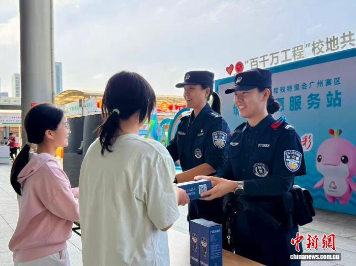 该大队在岗点旁边开设的服务站点,安排全国公安特警挑战赛冠军亚军选手参加服务,让旅客有机会近距离与特警尖兵互动。同时,还有“警师”“警徒”搭配上岗、青年女警开展普法宣传,进一步提升巡特警队员服务效能。警犬小伙伴也在人流密集场所开展巡防。各警种同向发力,协同作战,确保广州南站平安有序。