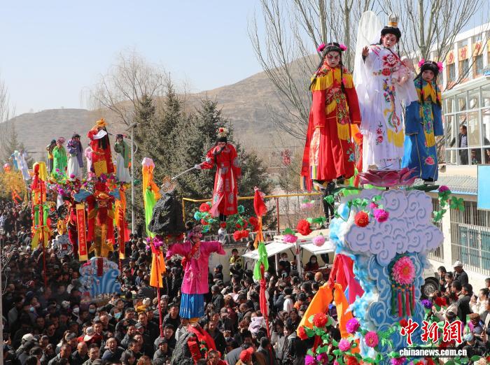 中新社西宁3月1日电 (祁增蓓)3月1日,农历正月十三,“中国民间文化艺术(高台)之乡”青海省西宁市湟中区拦隆口镇千户营村的街巷热闹非凡,19架造型精巧的高台缓缓巡游,身着传统戏服的孩童悬于高空,一场延续600余年的民间庆典,在欢声笑语中拉开帷幕。